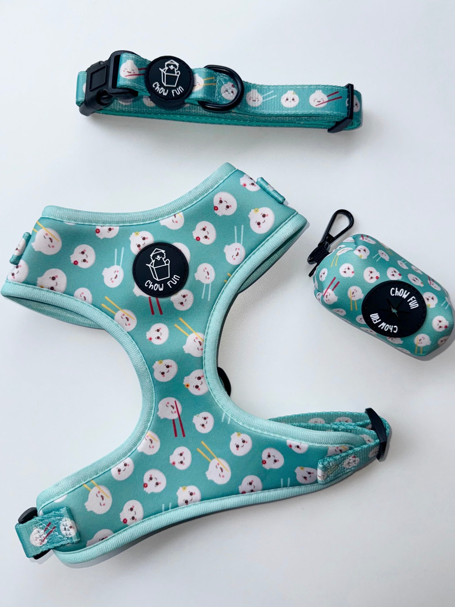 Introducing...our 'Bao-Wow' Collection, which includes a matching harness, dog waste holder, and...