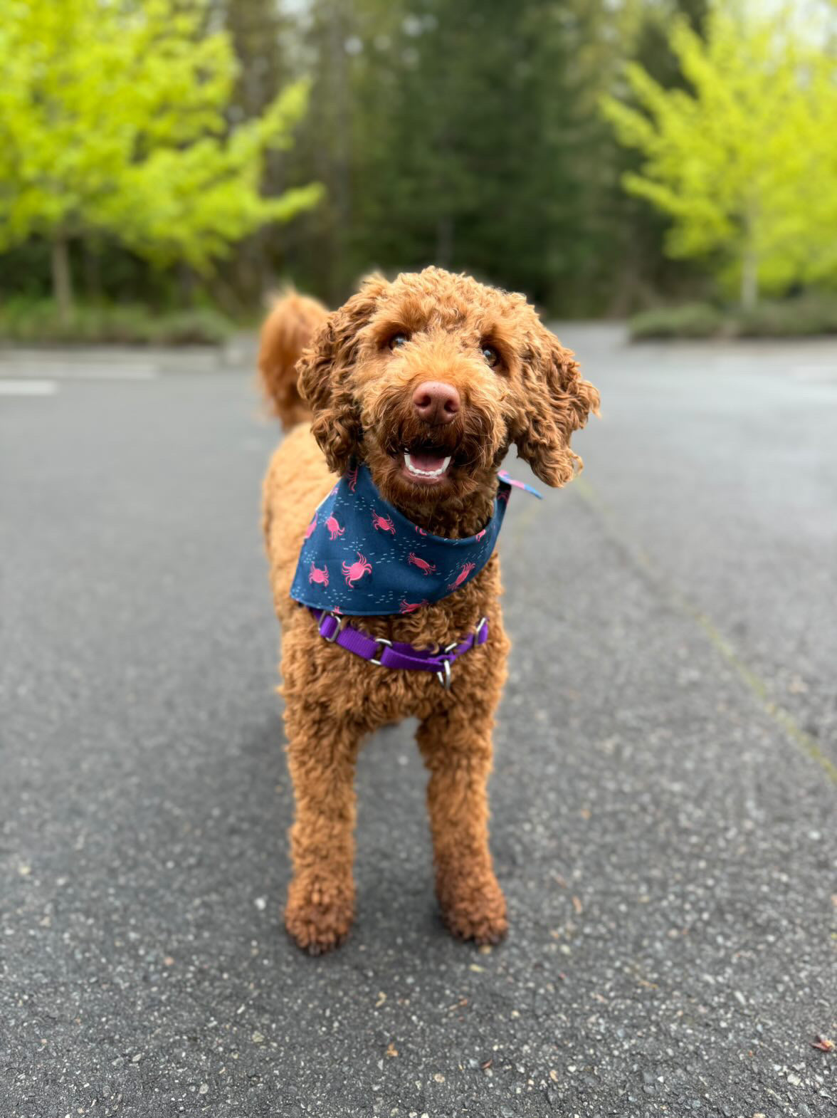 Small - recommended for dogs with neck size 12-13.5" (e.g. Mini Golden Doodle, Mini Cockapoo, Pug, Shih Tzu)  Snaps at ~16"