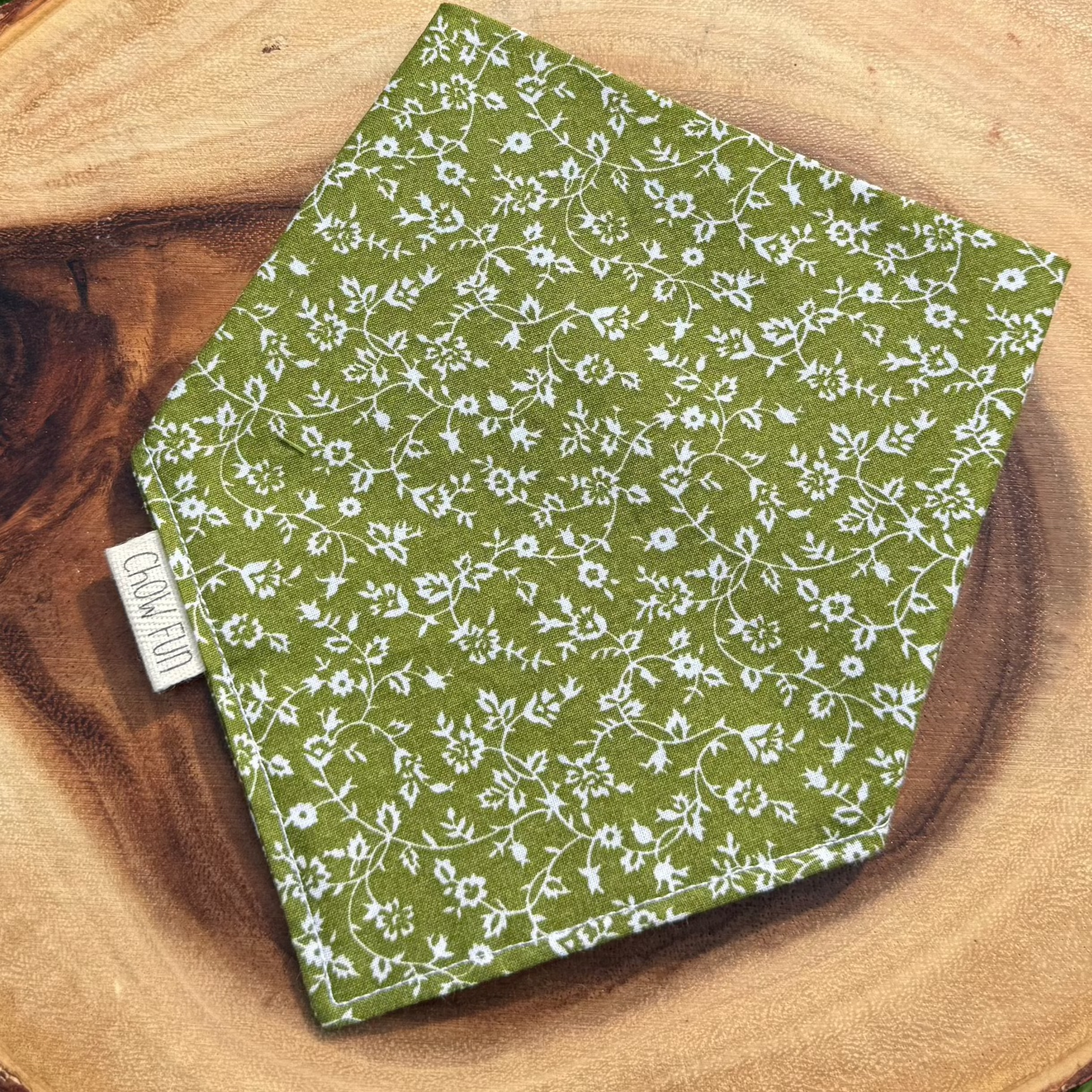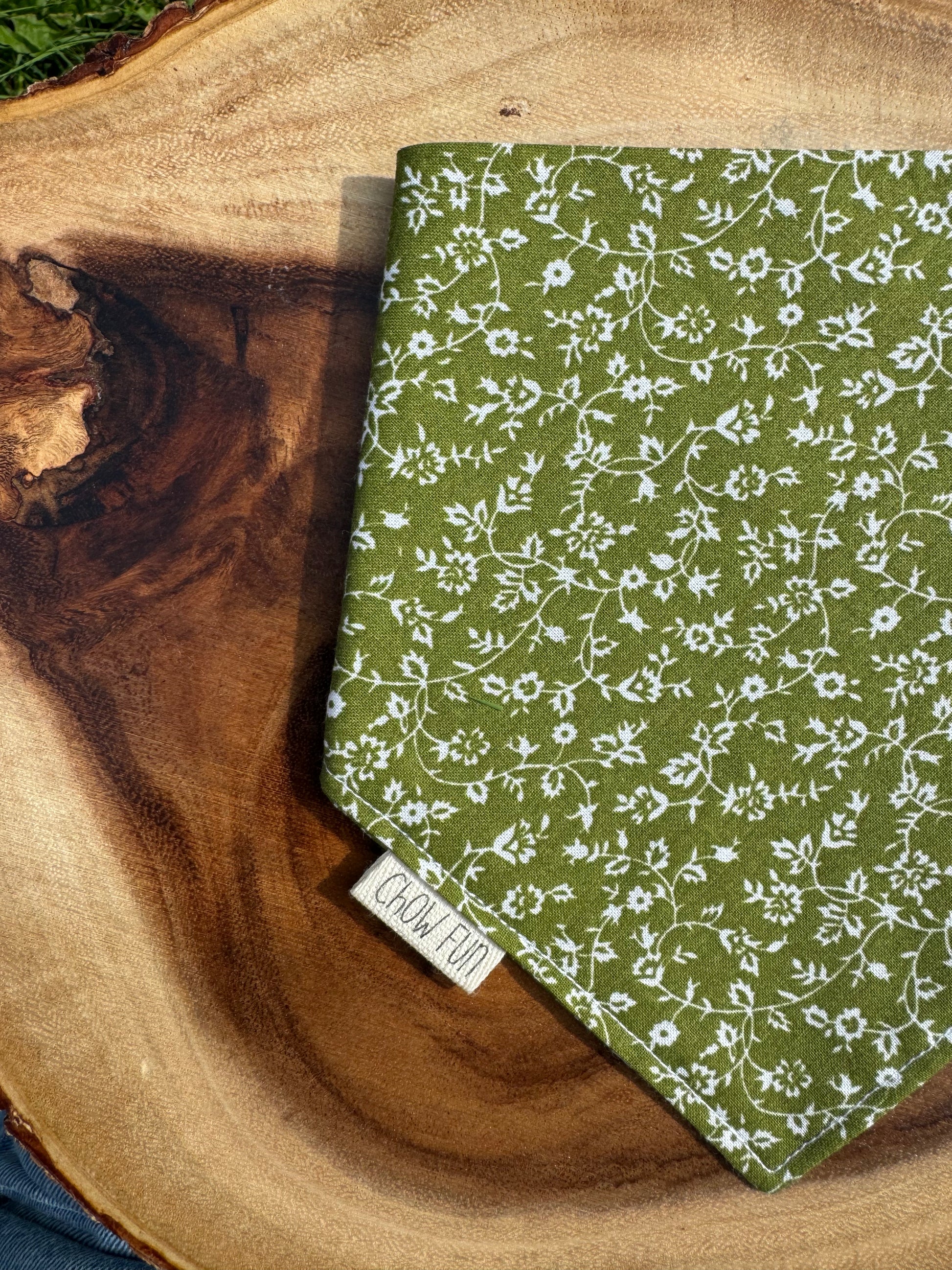 Bring a touch of autumn’s beauty to your pup Fall Florals bandana with rich green tones and delicate florals.