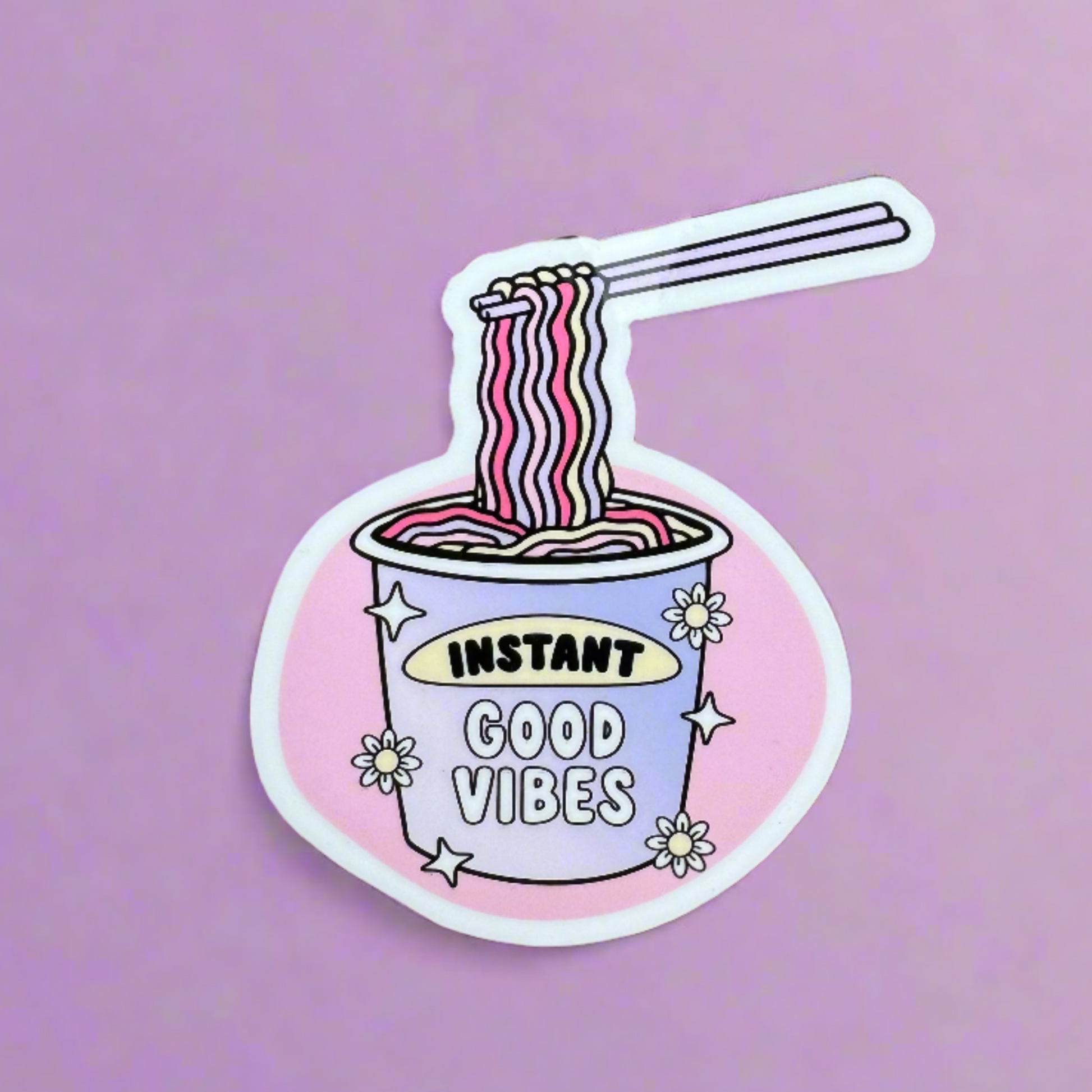 Dive into deliciousness with our "Instant Good Vibes" sticker, featuring a fun illustration of instant noodles ready to stir up some joy.