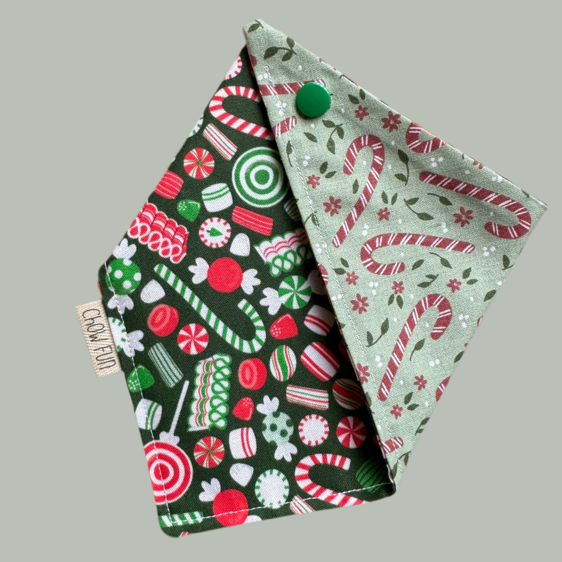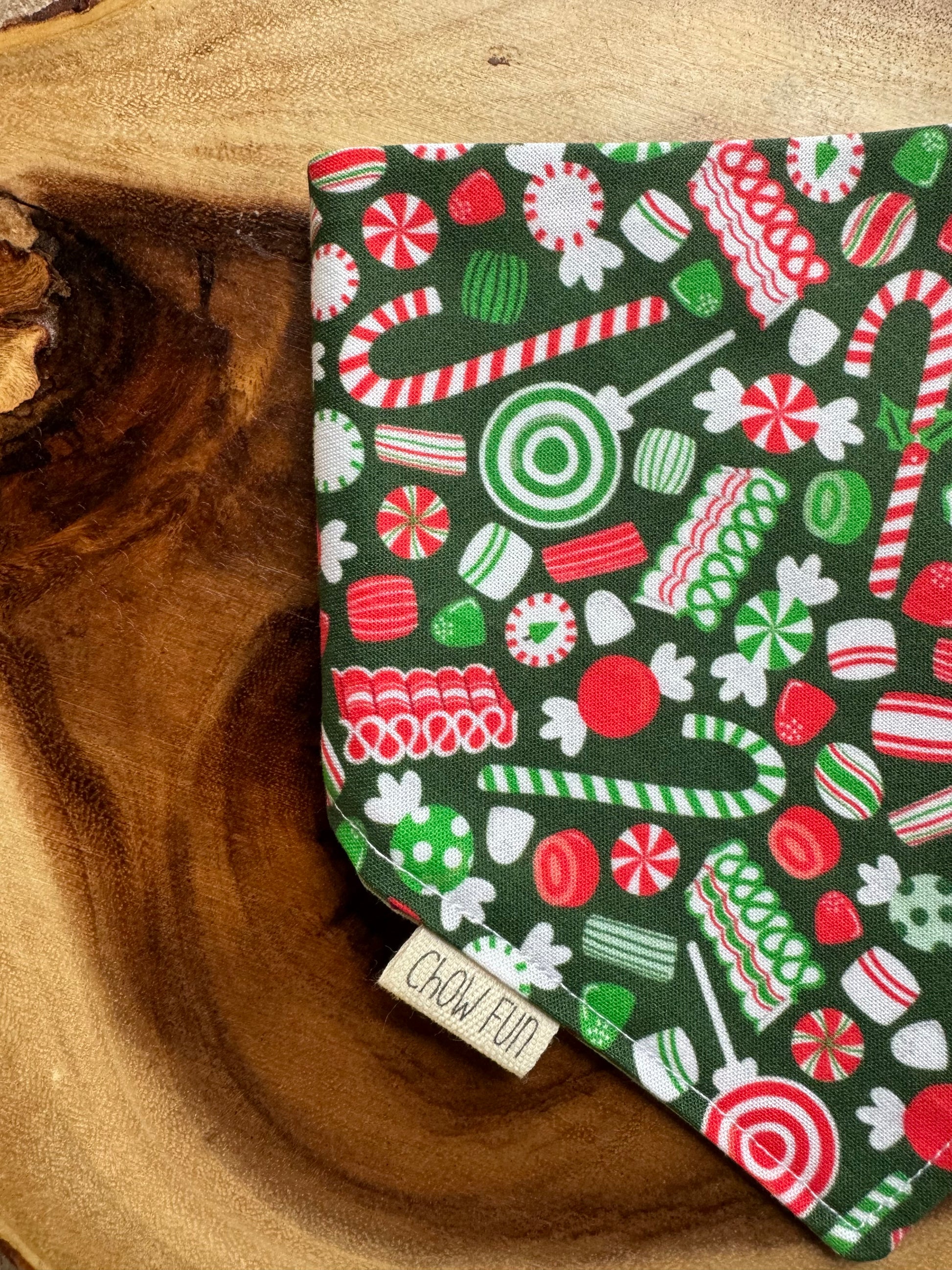 This reversible bandana is a two-in-one steal, featuring two candy cane prints.