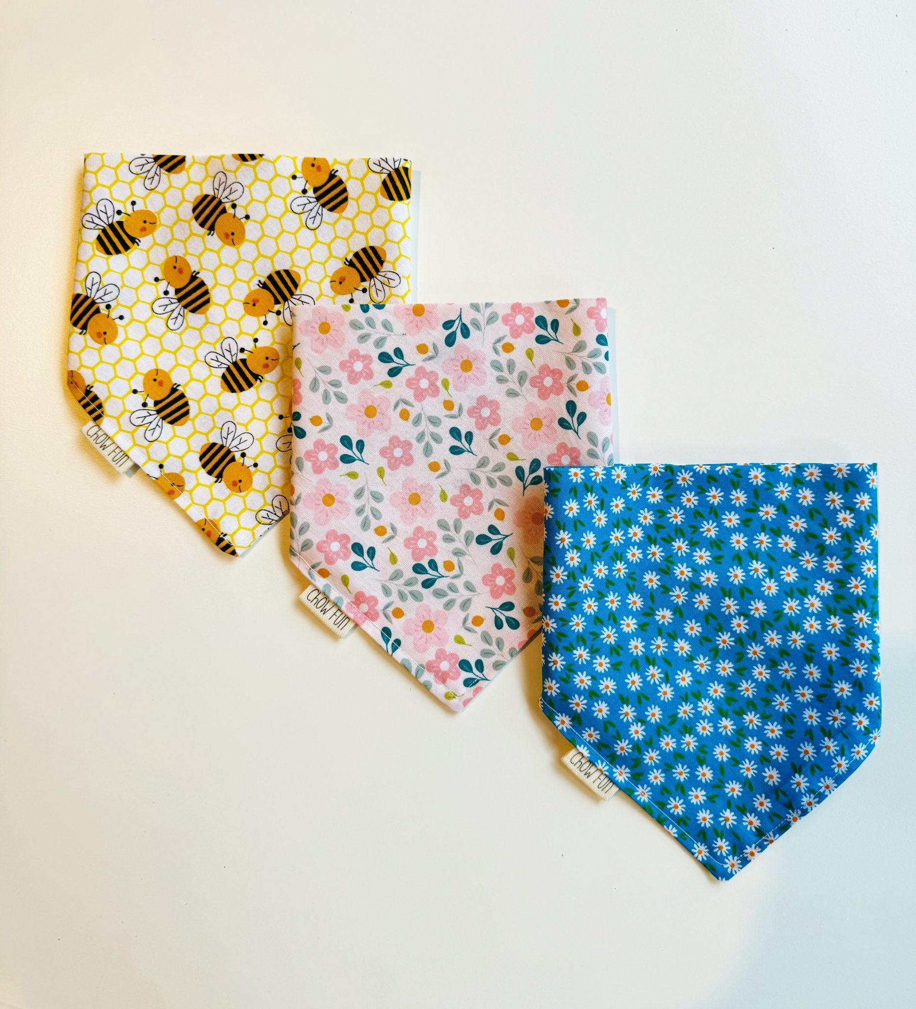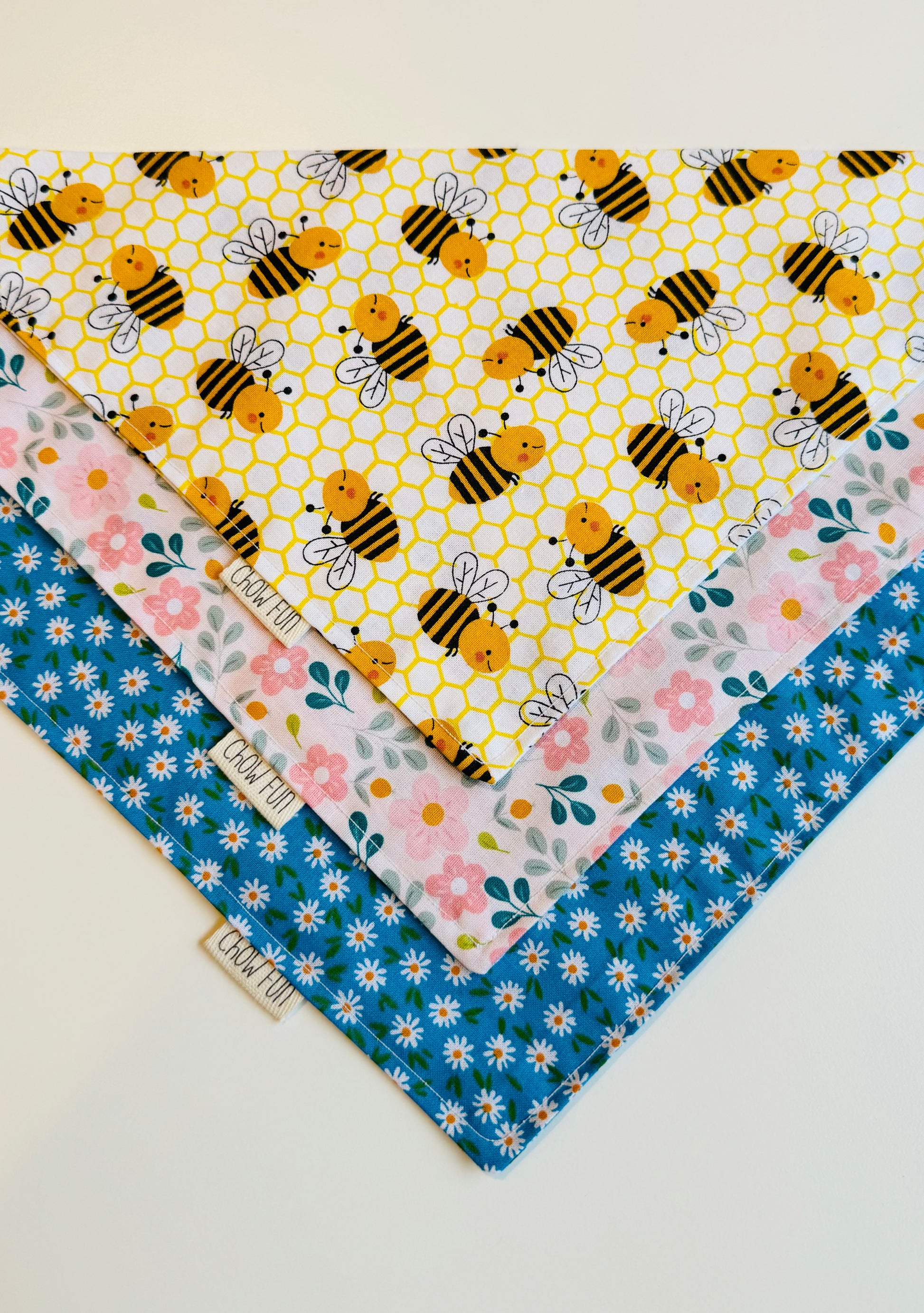 This season, spring into style with ALL three bandanas from the Blossom & Buzz Collection, which was inspired by our favorite spring phenomena. By purchasing a bundle, you save on each bandana!