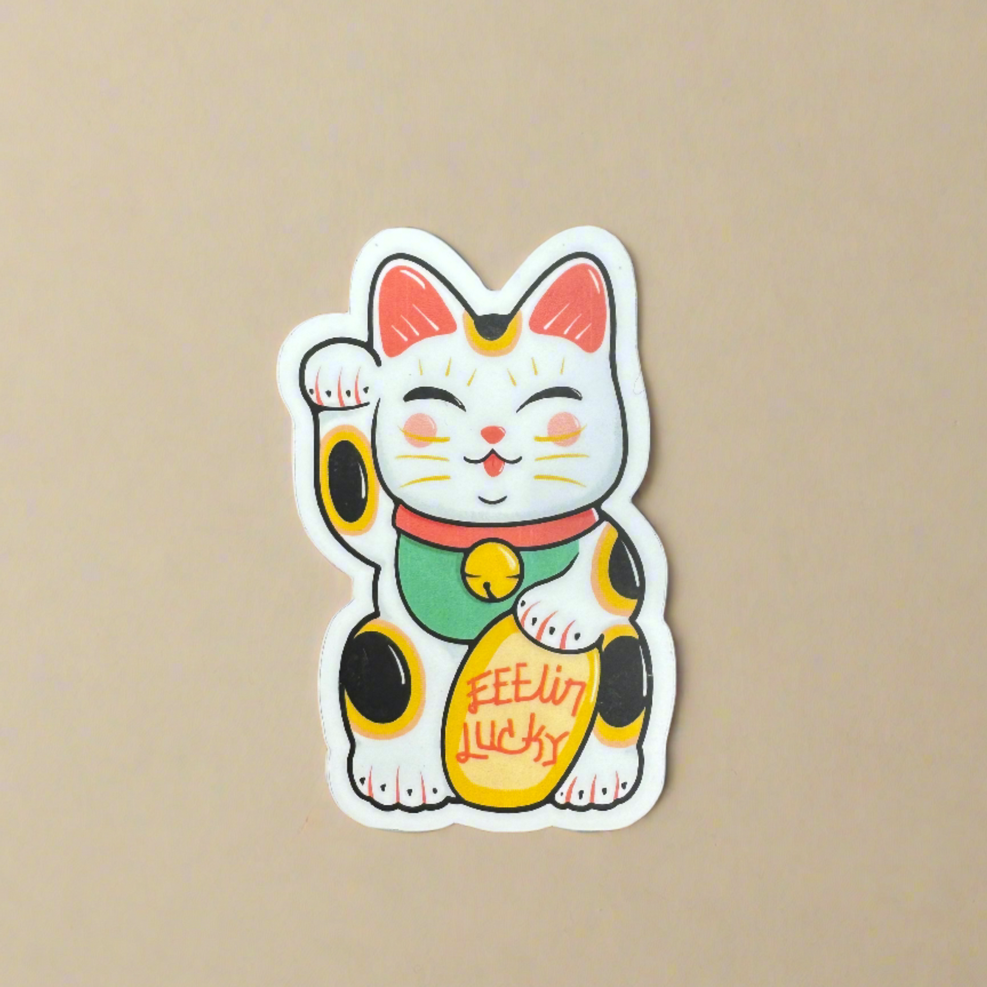 Bring home a fortune with the "Feelin' Lucky Cat" sticker. Adorned with a charming Maneki-neko, this sticker is a must-have for anyone who appreciates a touch of luck and cuteness.
