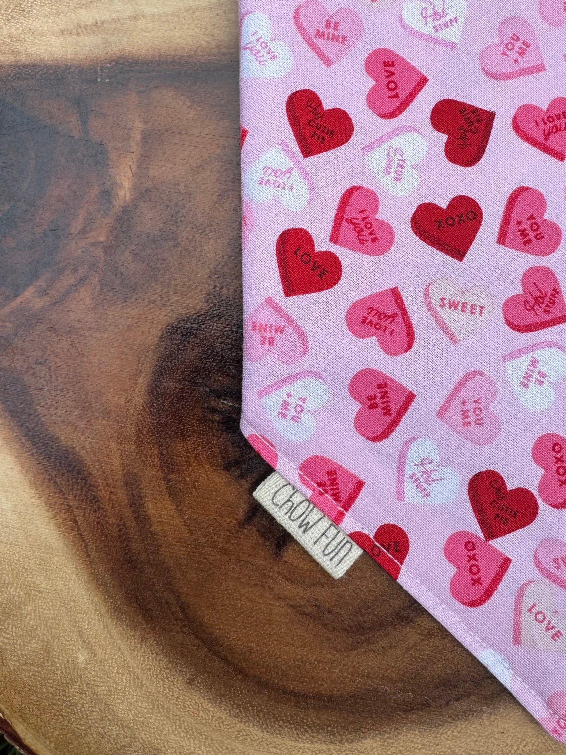 Celebrate Valentine’s Day with our "Sweethearts for a Sweetheart" bandana, inspired by the iconic candy hearts we all know and love.