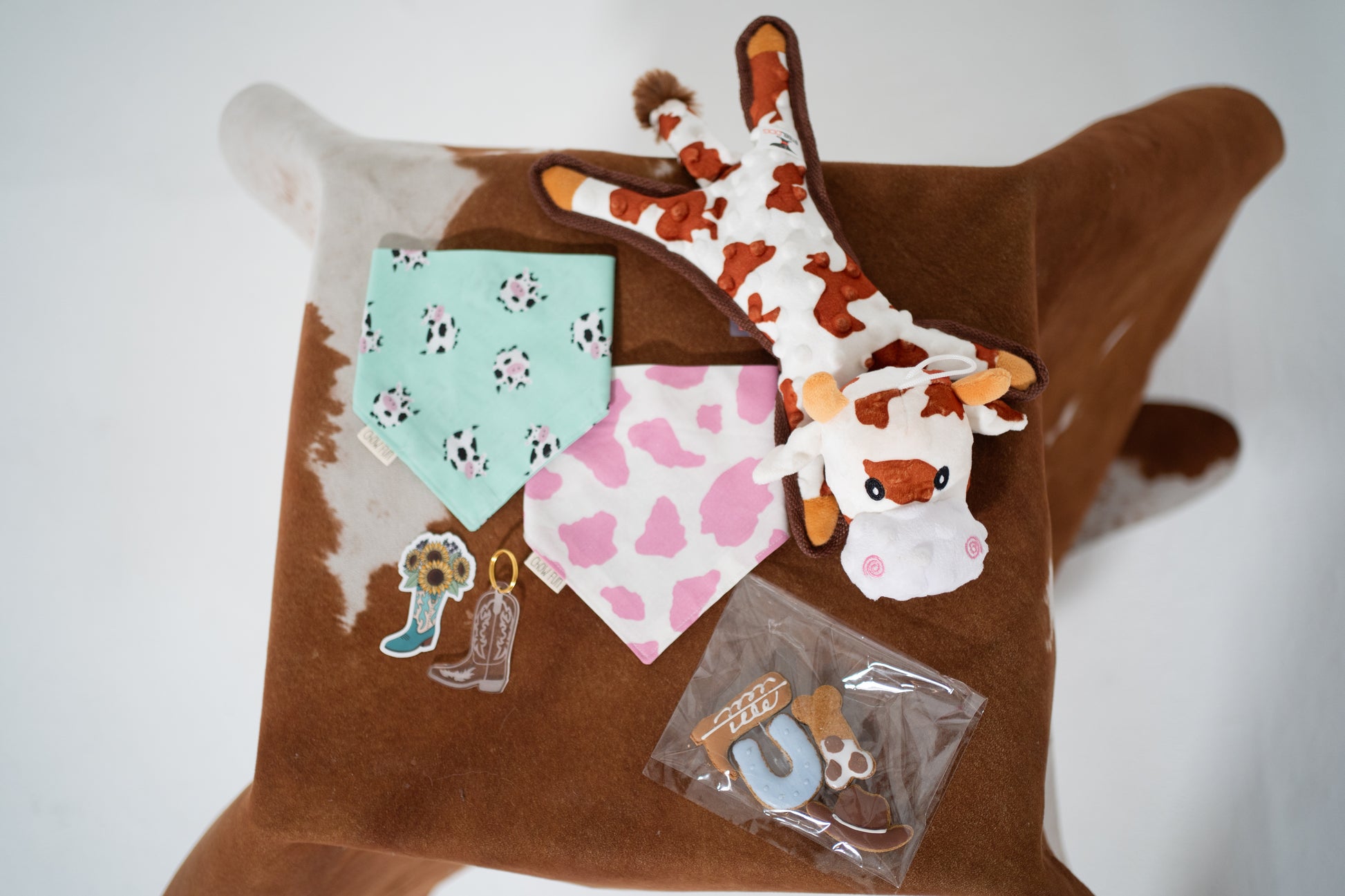 The Cow-abunga Cuteness Bandana is part of the Cowboy Collection, a series of bandana and cowboy-esque goods inspired by my sweet darlin' Cowboy who just celebrated his third birthday.